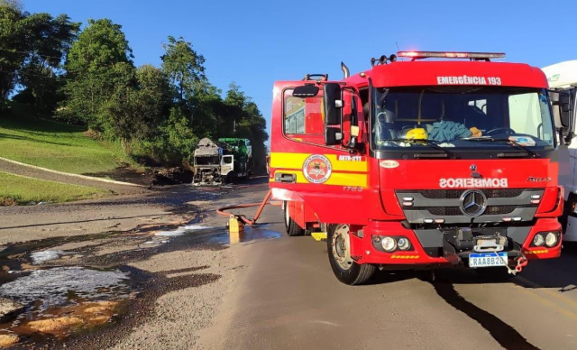 Por volta das 17h desta quarta-feira (17), as equipes do Corpo de Bombeiros de Maravilha foram acionadas para atender incêndio em carreta, na BR 282, próximo ao posto do Tedesco, no KM 168, Iraceminha. Ninguém se feriu.