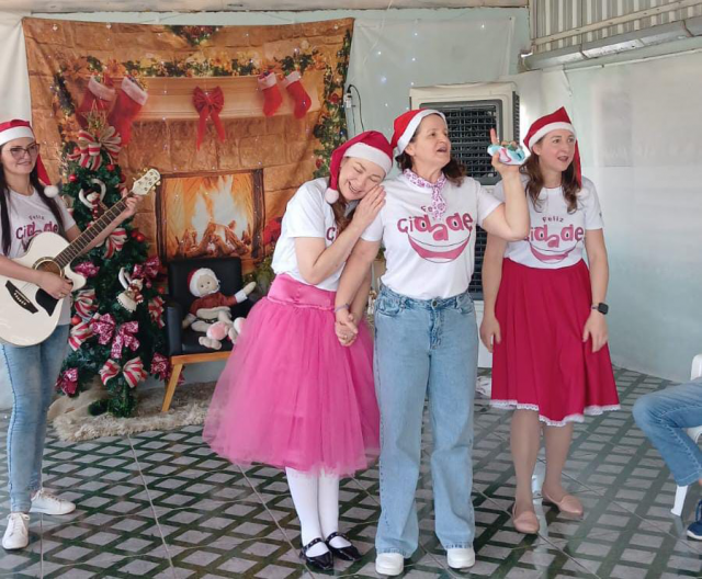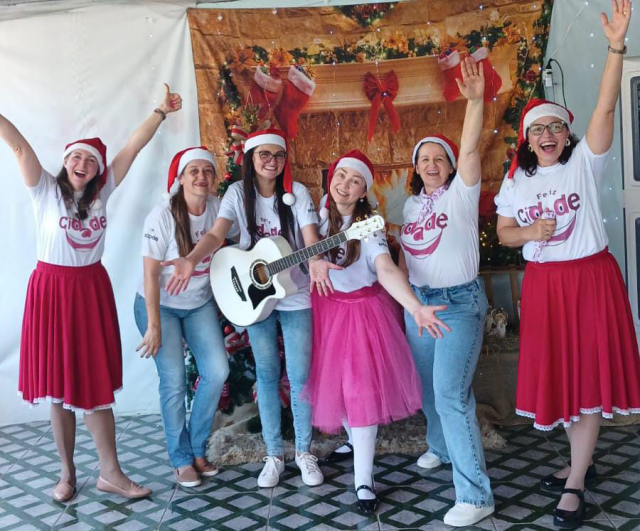 Desde 2022, o Projeto FelizCidade é realizado de forma voluntária em Maravilha e região levando canções, apresentações e muitos abraços ao ambiente de hospitais e entidades assistenciais. As atividades buscam proporcionar momentos de leveza, interação e esperança, além de contribuir com o apoio emocional de quem presencia as apresentações. Neste semestre, o grupo promoveu ações temáticas, através de músicas e apresentações natalinas apresentadas em entidades como o Lar Coração de Maria, o Residencial Maravilha e o Hospital de Cunha Porã. Acompanhada de um violão e toucas de natal, a equipe do projeto espalhou mensagem de acolhimento e dividiu muitos sorrisos.