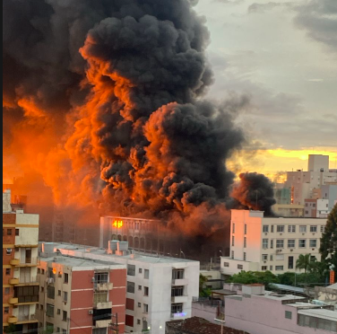 Juliana informou, ainda, que o incêndio atinge o prédio São José, que representa cerca de 20% da área da escola. Imagens mostram fogo nos andares superiores do prédio. Com a força do vento, fumaça e fuligem se espalharam rapidamente.