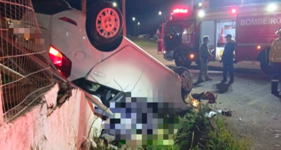 De acordo com o CBMSC (Corpo de Bombeiros Militar de Santa Catarina), dois carros — um VW Gol e um VW Golf — bateram de lado e um deles acabou capotando por conta do impacto.