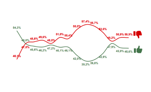 Segundo a pesquisa, 50,9% dos entrevistados desaprovam a gestão federal, enquanto 45,6% a aprovam. Outros 3,5% não souberam ou não opinaram. Em relação ao mês anterior, a desaprovação permaneceu estável, enquanto a aprovação apresentou leve queda, de 45,9% para 45,6%.