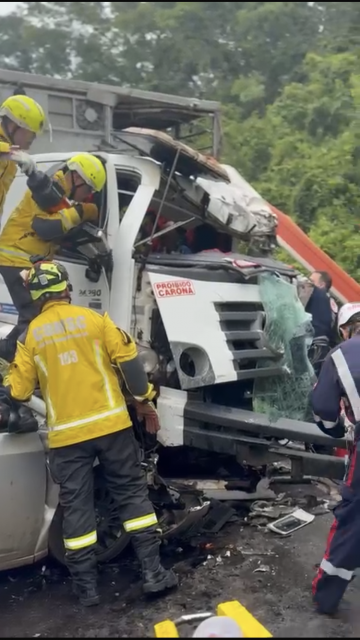 Equipes da Polícia Rodoviária Federal (PRF) e de socorro estão atuando no local, realizando o atendimento da ocorrência.