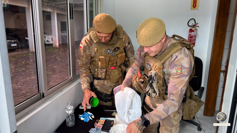 Segundo a PM, equipes do Tático, Motos e Canil abordaram um veículo de aplicativo de mobilidade. Durante revista no carro, foram encontradas porções de cocaína. Em conversa com os policiais, o condutor admitiu que guardava mais drogas em sua residência, no bairro Sagrado Coração de Jesus.