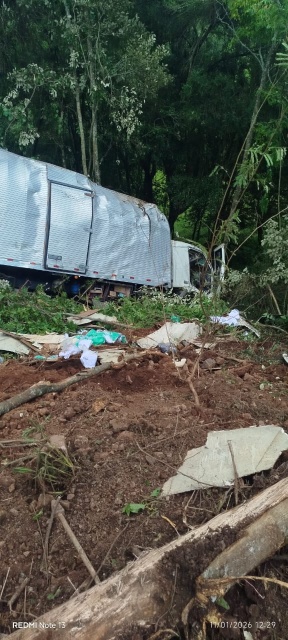 registrada saída de pista, que envolveu um caminhão Volvo, que se encontrava