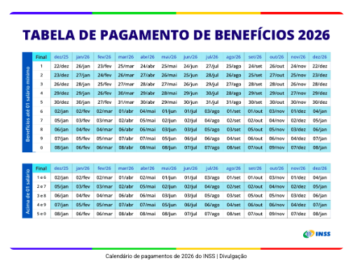 Os pagamentos são feitos conforme o número final do benefício, sem considerar o último dígito verificador, que aparece antes do traço. Se o número do benefício for 0104-7, por exemplo, o dígito final a ser considerado é o 4.