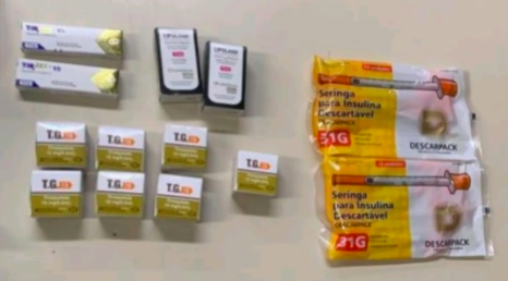 Segundo a PM, durante a fiscalização os policiais encontraram a bolsa térmica embaixo do banco do motorista. No interior, havia frascos de um medicamento utilizado tanto no tratamento do diabetes quanto para perda de peso. Os ocupantes do veículo não apresentaram receita médica nem a documentação exigida para a importação dos remédios.