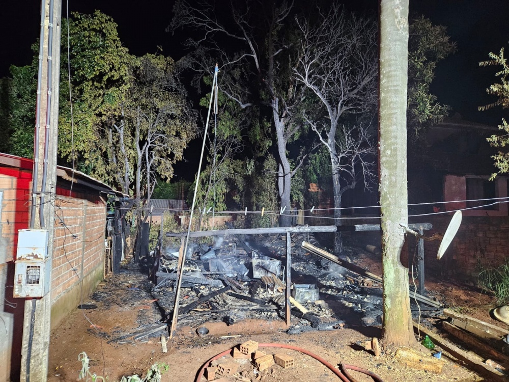 incêndio destruiu uma edificação no fim da noite desta quarta-feira (21), às