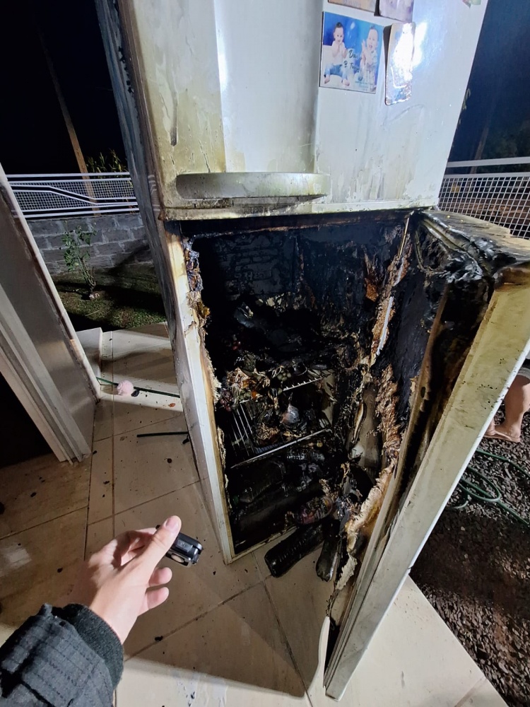 maior concentração na geladeira. As chamas já haviam atingido parte do forro e