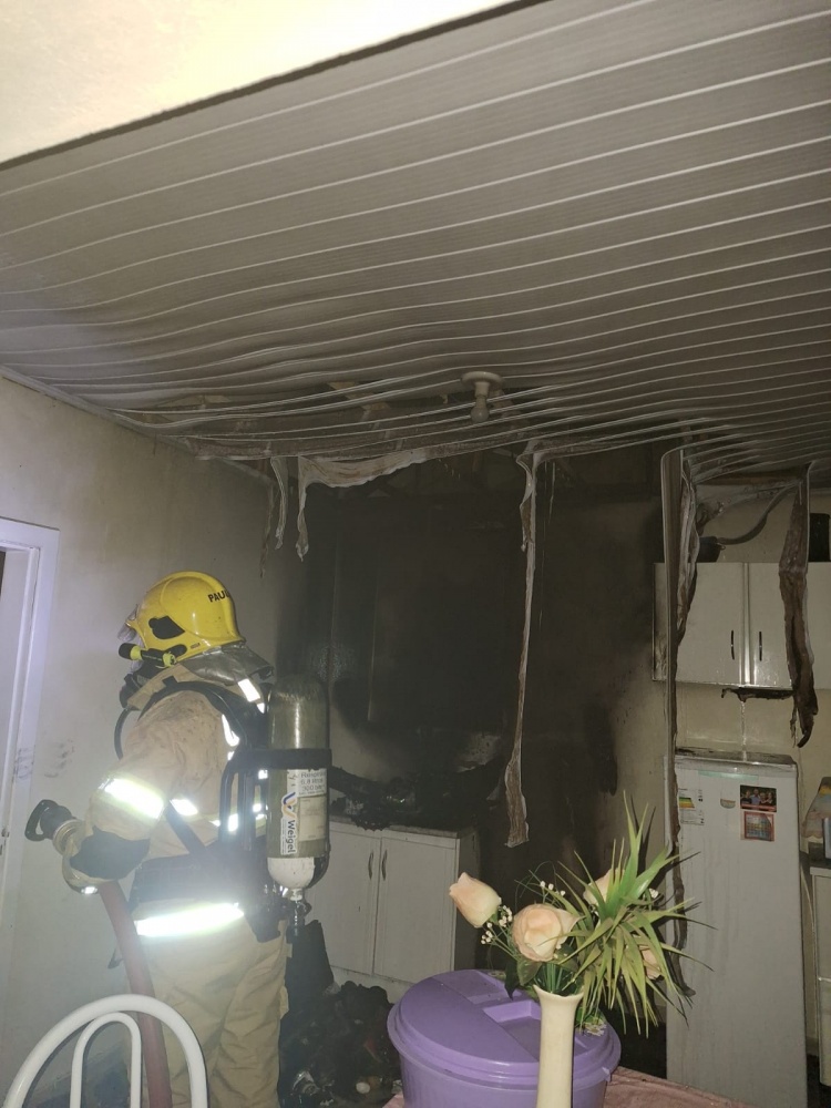 bombeiros explicam que o incêndio estava concentrado na área da cozinha, com