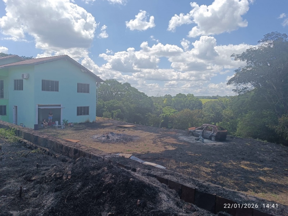 Segundo o proprietário do imóvel, o veículo atingido era um Fiat/Pálio, já sinistrado, que estava estacionado no local e foi completamente consumido pelo fogo. A edificação residencial de dois pavimentos, com cerca de 370 metros quadrados, não foi atingida.