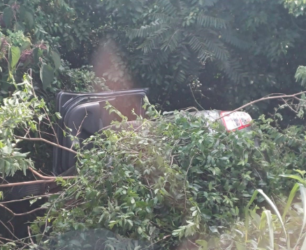 Com o impacto, o carro desceu uma ribanceira e capotou às margens da rodovia, parando em uma área de mata. Apesar do acidente, os dois ocupantes não sofreram ferimentos decorrentes da colisão, mas acabaram sendo atacados por um enxame de abelhas no local.