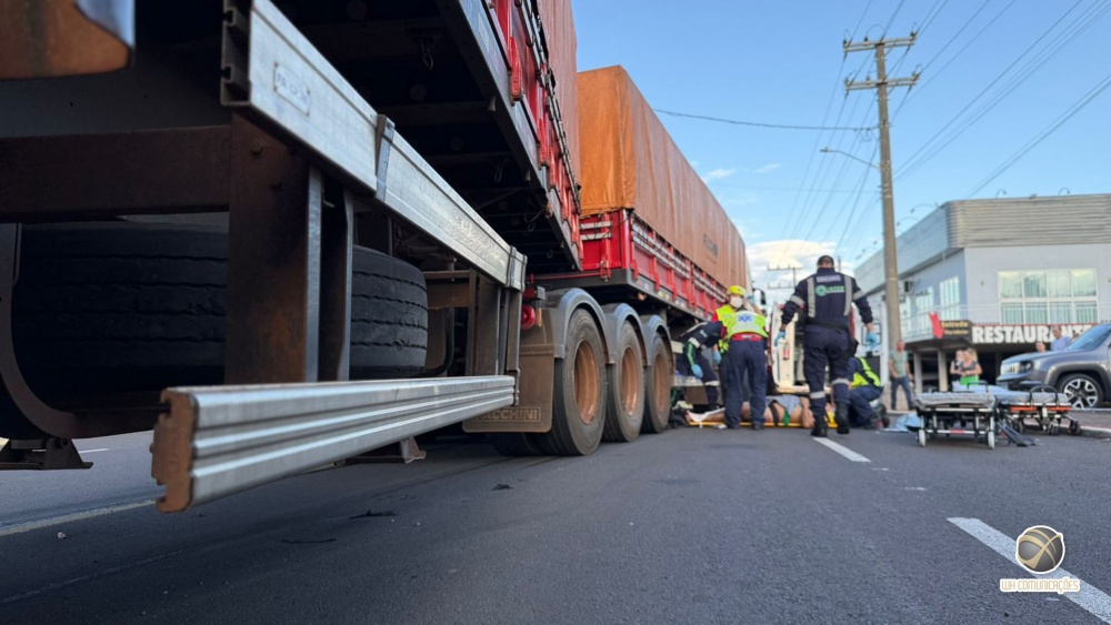 Um motociclista foi resgatado após sofrer um grave acidente no fim da tarde desta segunda-feira (26), na Avenida Willy Barth, em São Miguel do Oeste. Ele caiu sob uma carreta bitrem e acabou sendo arrastado por cerca de 10 metros.