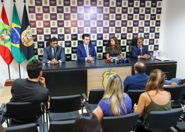 A coletiva contou ainda com a presença do diretor de Polícia da Grande Florianópolis, delegado Pedro Henrique de Paula e Silva Mendes, e do diretor do Gabinete da Delegacia-Geral, delegado Marcelo Nogueira.