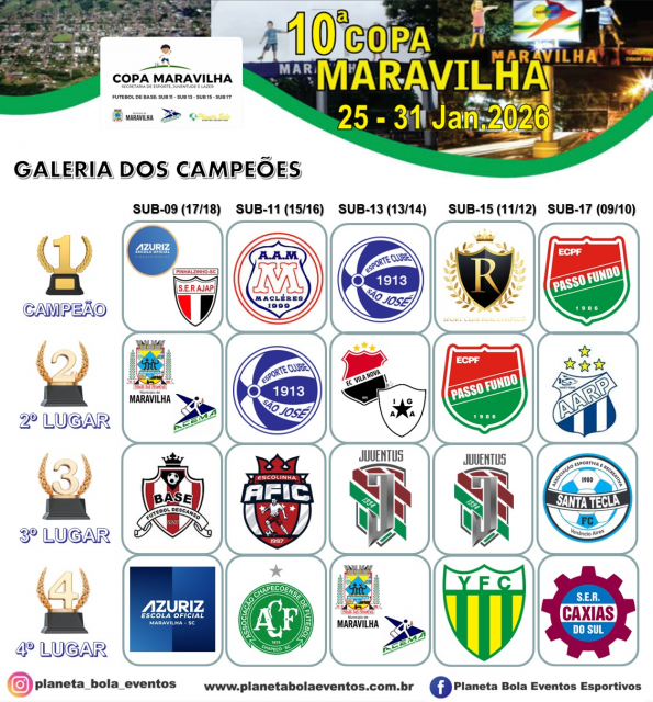 A competição foi encerrada após sete dias intensos, marcados por emoção, muitas jogadas e gols. Reconhecida pelo fomento do futebol de base e pela revelação de atletas, a 10ª Copa Maravilha registrou mais de 180 jogos e mais de 600 gols, reunindo aproximadamente 1.800 pessoas, entre atletas e comissões técnicas, além de mais de 90 equipes, distribuídas em cinco categorias.