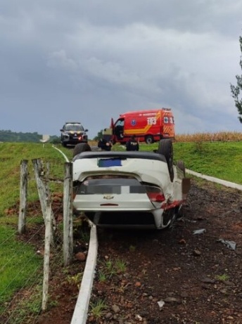 Um acidente de trânsito com saída de pista seguida de capotamento foi registrado na manhã desta terça-feira (3) na BR-282, na Linha Borevi, interior do município de Saudades, no Oeste de Santa Catarina. Apesar da gravidade da dinâmica, o motorista de um Chevrolet Prisma não sofreu ferimentos.