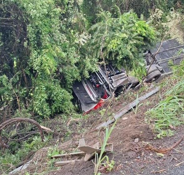 “A gente teve vítimas com amputação de membros, teve vítimas com ferimentos no rosto, teve uma que quebrou o maxilar”, relatou a oficial. Segundo ela, o impacto foi intenso, já que o ônibus despencou cerca de dez metros e colidiu contra uma árvore. “Foi uma pancada muito forte. Essa árvore entrou para o fundo do ônibus, mais para trás”, afirmou.