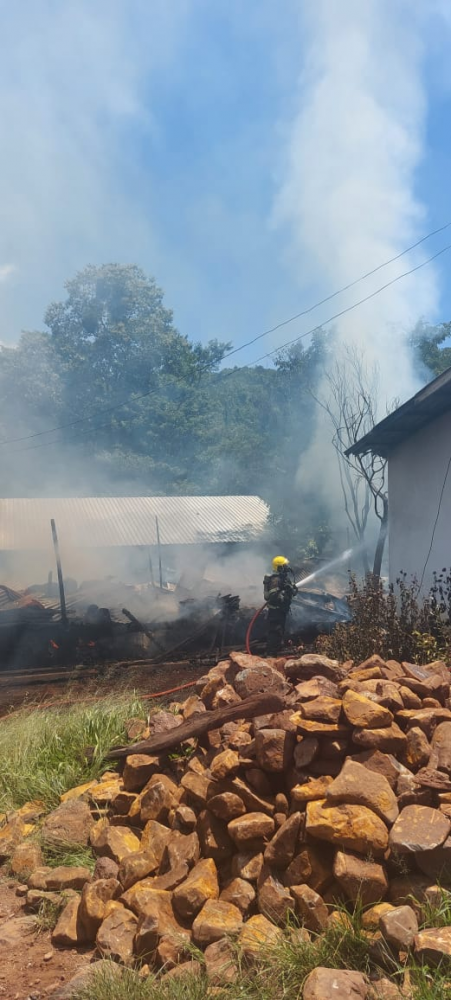 Durante a quarta-feira (11), um incêndio na Linha Biguazinho, em Iraceminha, deixou imóveis danificados e animais mortos. O fogo atingiu um galpão, que ficou completamente destruído, e acabou se propagando até a residência da propriedade rural.