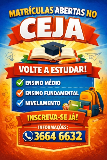 O Centro de Educação de Jovens e Adultos (Ceja) de Maravilha está com matrículas abertas para o ano de 2026, para turmas do Ensino Fundamental, Médio e nivelamento. As matrículas podem ser feitas na sede do CEJA em Maravilha ou com as coordenadoras das Unidades Descentralizadas