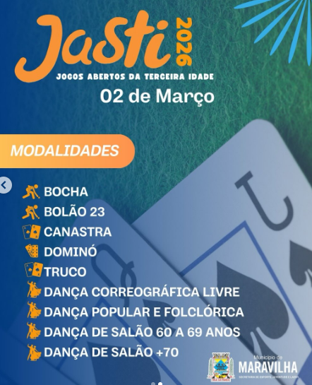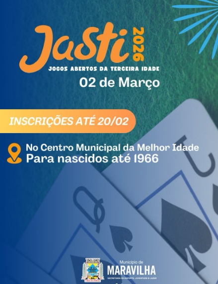 A fase municipal dos Jogos Abertos da Terceira Idade (JASTI) 2026 será realizada em março no município de Maravilha. Mas as inscrições para participar do evento se encerram nesta semana: no dia 20 de fevereiro.