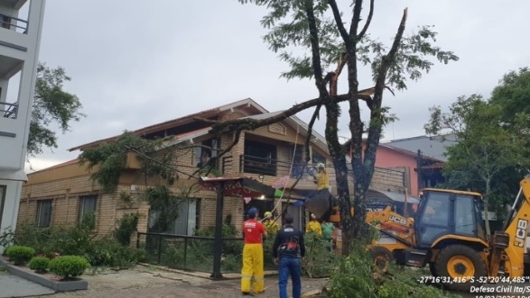 Segundo a Defesa Civil Municipal, duas árvores caíram sobre a rodovia. Uma delas atingiu um caminhão que trafegava pelo local. As árvores foram removidas por equipes do Corpo de Bombeiros, com apoio da Defesa Civil. O motorista não sofreu ferimentos.