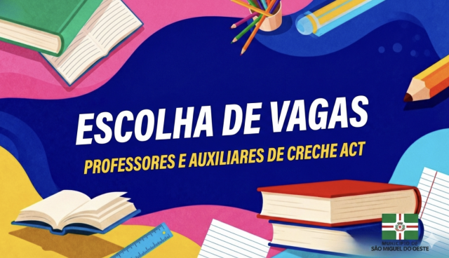 A Prefeitura de São Miguel do Oeste, por meio da Secretaria Municipal de Educação, realizará a 4ª chamada coletiva para escolha de vagas destinada aos candidatos aprovados no Processo Seletivo nº 001/2025.