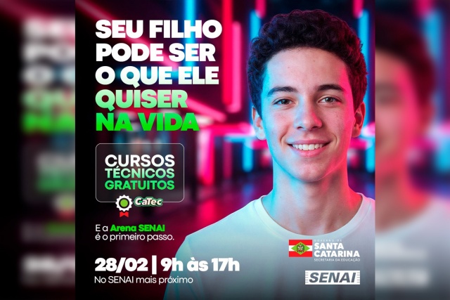 A iniciativa integra uma mobilização estadual promovida pelo SENAI/SC, que abrirá as portas de 45 unidades em Santa Catarina para apresentar 14,7 mil vagas em 32 cursos técnicos gratuitos. As oportunidades fazem parte do Programa Ensino Técnico Gratuito do Governo do Estado de Santa Catarina.