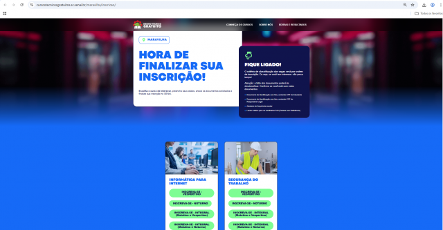 Os interessados que atendem aos critérios devem realizar a inscrição pelo link https://cursostecnicosgratuitos.sc.senai.br/maravilha/inscricao/ , enquanto houver disponibilidade de vagas. No portal, também é possível consultar informações detalhadas sobre cada curso, como grade curricular, pré-requisitos e documentação necessária.