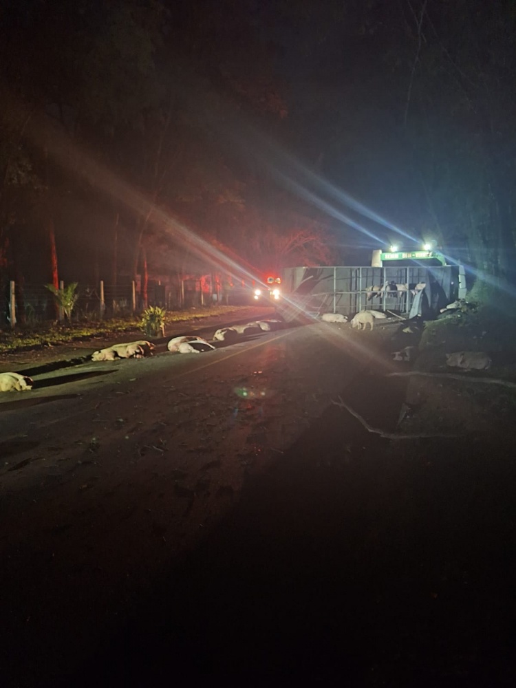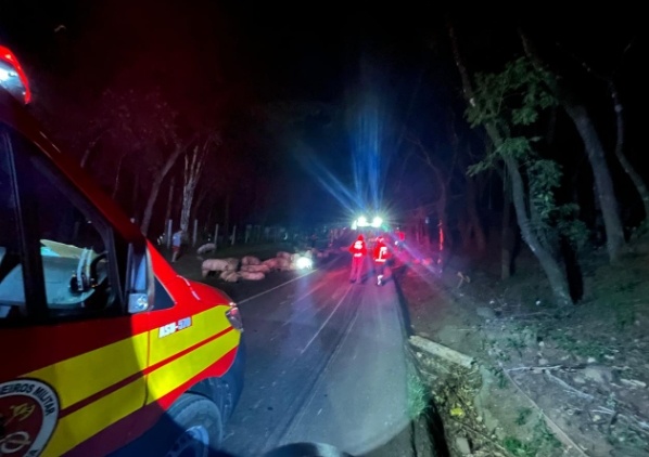 O caminhão transportava 82 suínos, recolhidos de produtores da região, com destino ao frigorífico da empresa JBS, em Itapiranga. Com o impacto do tombamento, parte dos animais ficou espalhada pela pista e outros presos nos compartimentos da carroceria, sendo que alguns não resistiram.