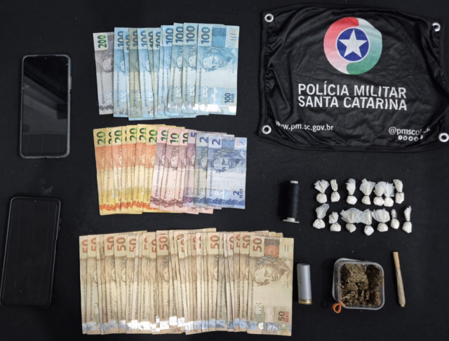 Durante as buscas no imóvel, os policiais localizaram 13 porções fracionadas de cocaína, totalizando cerca de 15 gramas, além de materiais utilizados para embalar drogas e aproximadamente R$ 3.200 em dinheiro.