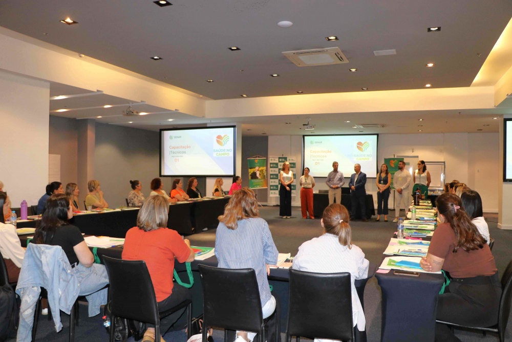 Saúde no Campo. O treinamento ocorre no Hotel Slaviero e reúne profissionais