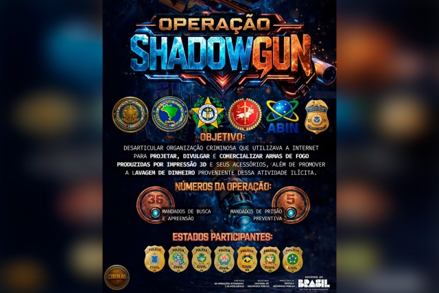A Operação Shadowgun cumpriu 36 mandados de busca e apreensão e cinco mandados de prisão, tendo como alvo 30 investigados em 12 estados brasileiros.