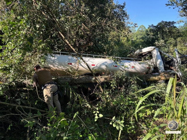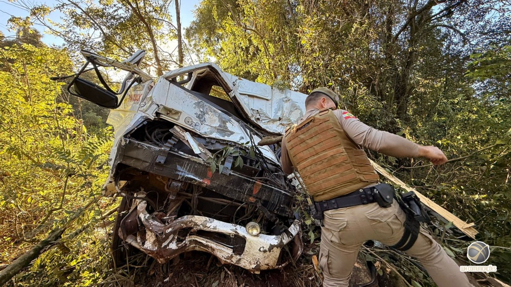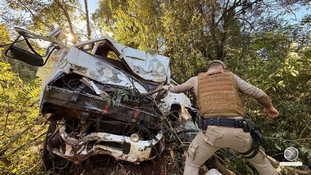 Um grave acidente de trânsito foi registrado na manhã desta sexta-feira (13) na Linha Santa Catarina, interior de São Miguel do Oeste. Um caminhão saiu da pista e colidiu contra árvores após apresentar falha mecânica no sistema de freios.