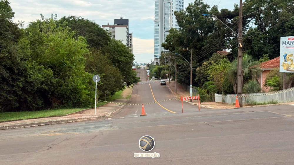 O setor de trânsito de São Miguel do Oeste, por meio do Demutran, realizou na manhã desta terça-feira (17) a interdição de um trecho da rua Marquês do Herval.