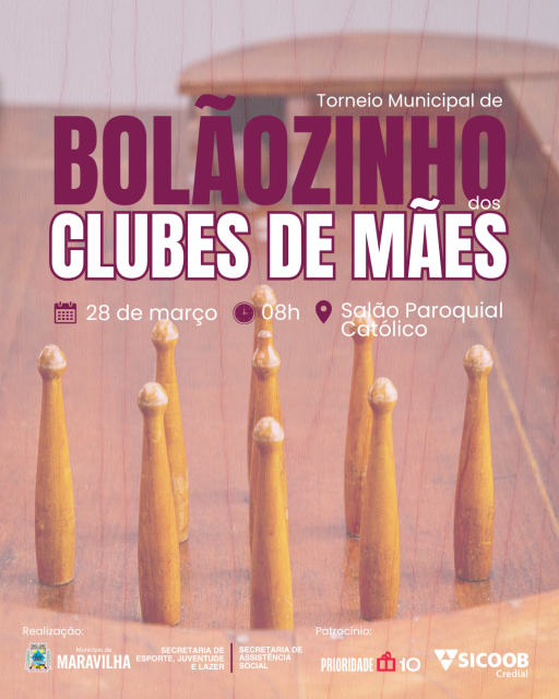 A Secretaria de Assistência Social, em conjunto com a Secretaria de Esporte, Juventude e Lazer, anunciou a data oficial da 13ª Edição do Torneio Municipal de Bolãozinho dos Clubes de Mães. O evento, que já é tradição no município, tem data marcada para o dia 28 de março e acontece no Salão Paroquial Católico a partir das 8 horas da manhã.