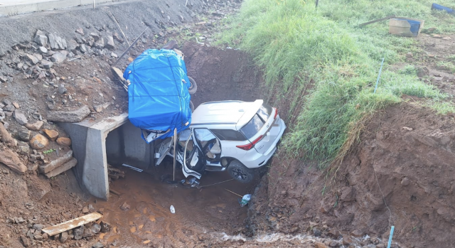 No local, foi constatado que o veículo saiu da pista e, na sequência, colidiu contra um barranco.