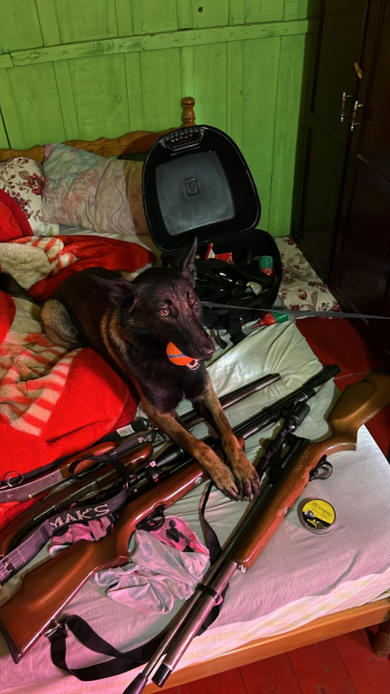 Durante o cumprimento da ordem judicial, os policiais localizaram e apreenderam três revólveres calibre .38, munições do mesmo calibre, duas espingardas, munições calibre 28 e duas espingardas de pressão.