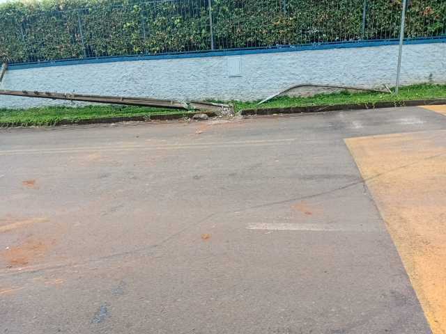 Na manhã desta segunda-feira (23), um veículo de passeio colidiu com um poste de energia elétrica na rua Euclides Mário Canale, em Maravilha, nas proximidades com a empresa Reafrio. Com o impacto, o poste acabou caindo.