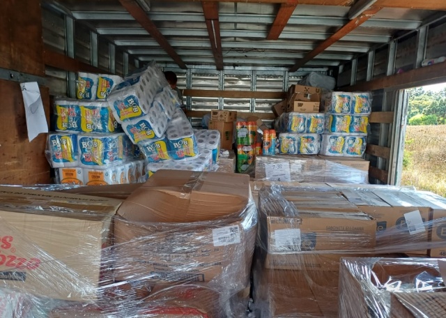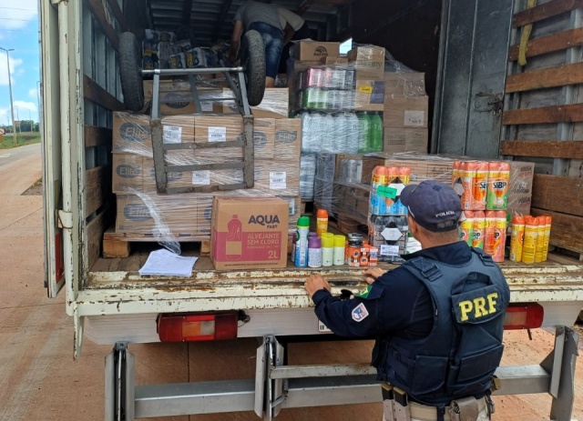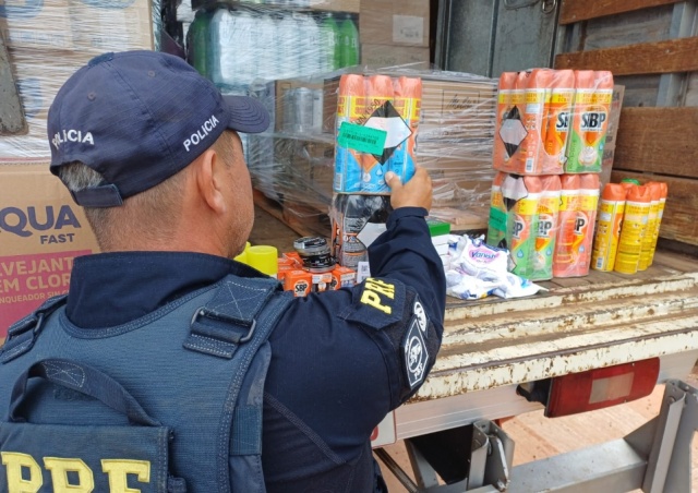 Ao verificarem a documentação e abrirem o baú, os policiais identificaram que a carga estava separada apenas por destino, desrespeitando normas de segurança que proíbem o transporte conjunto de alimentos com agentes químicos.