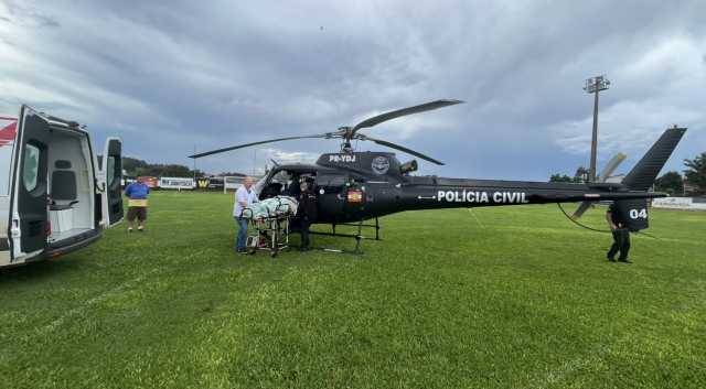 A aeronave da Polícia Civil, tripulada por policiais do SAER-Fron e pela equipe do SAMU Aeromédico, foi acionada para realizar o transporte do paciente, identificado pelas iniciais N.M.K., do município de Iporã do Oeste até Xanxerê, referência em atendimento cardiológico na região.