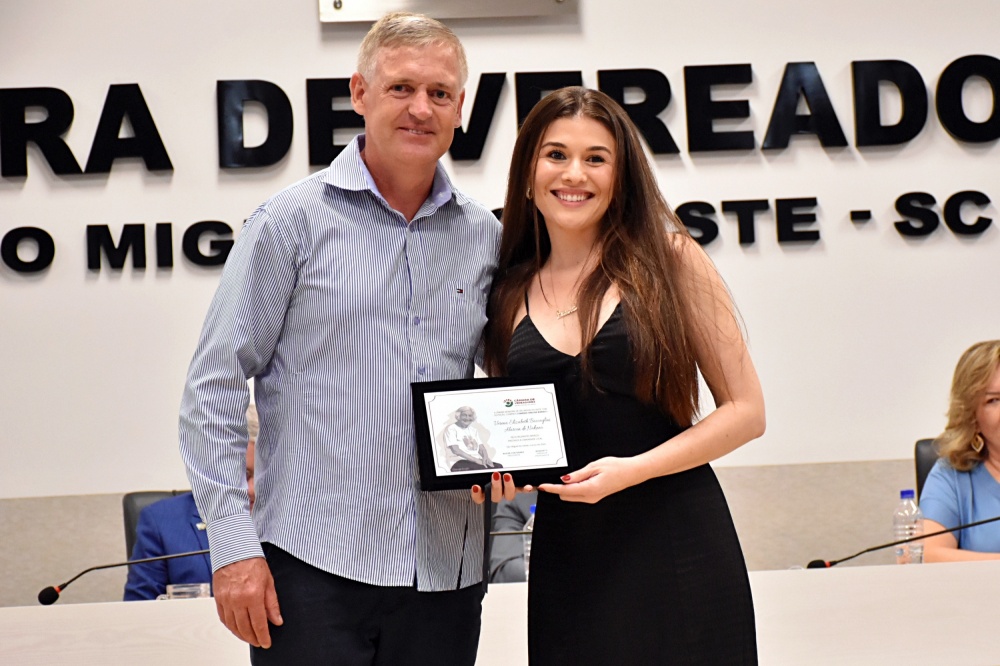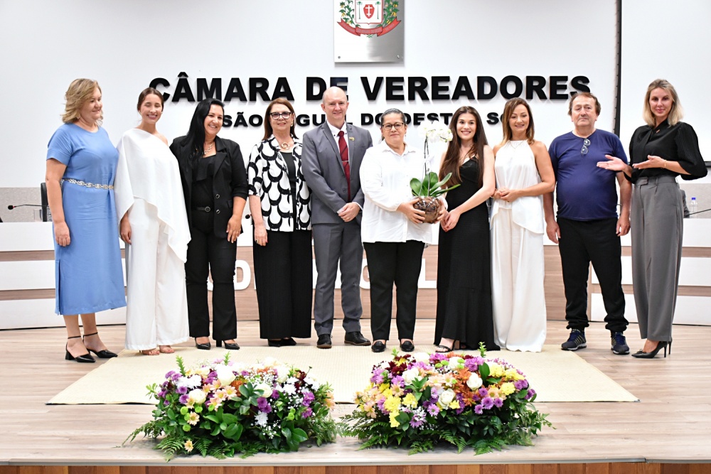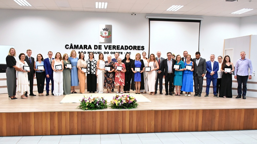 Em uma solenidade marcada pelo reconhecimento ao protagonismo feminino, a Câmara de Vereadores de São Miguel do Oeste realizou nesta quarta-feira (25) a sessão solene de concessão da Comenda Oralina Borges. O evento, realizado no plenário da Casa, celebrou a trajetória de mulheres que se destacam pela relevância de suas ações e contribuições sociais, profissionais, culturais ou comunitárias no município. A honraria, instituída pela Lei Municipal nº 8.424/2025, ocorre anualmente em alusão ao Mês da Mulher.
