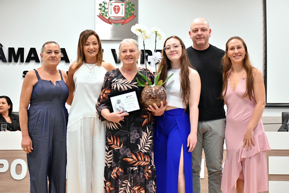 · Maria Gema Merlo: A “Nona Merlo”, indicada pela vereadora Andréia Rebelato, simboliza a força da família e a dedicação absoluta na criação de seus nove filhos e netas.