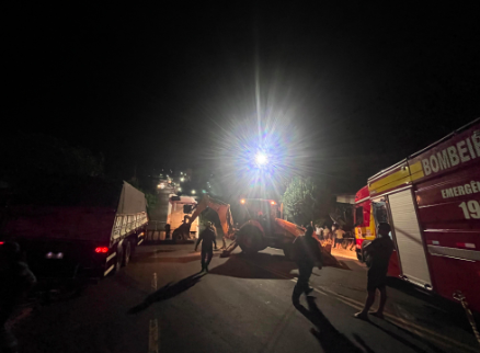 Os bombeiros realizaram a estabilização da carreta e efetuaram o corte de parte da vegetação para liberar o rodado. Com o auxílio de uma retroescavadeira da prefeitura, o veículo foi retirado do local de forma segura.