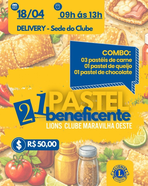 O Lions Clube Maravilha Oeste promove a 21ª edição do Pastel Beneficente. Tradicional, a ação tem como objetivo a arrecadação de recursos para a manutenção das campanhas e serviços desenvolvidos pelo clube.