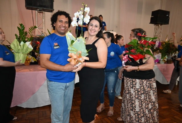 A programação seguiu com um bingo recreativo, que distribuiu mais de 100 arranjos de flores entre as participantes, tornando a noite ainda mais especial.