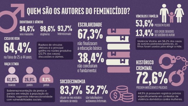 O Mapa também evidencia, segundo a Coordenadora-Geral do Neavit, a sobreposição entre vulnerabilidade territorial e social das vítimas. Embora o feminicídio seja um fenômeno que atravessa todas as classes sociais, os dados revelam que ele atinge de forma mais intensa mulheres que estão na base da pirâmide socioeconômica, com renda familiar per capita de até cinco salários mínimos, baixa escolaridade, muitas sem conclusão do ensino fundamental, e inseridas em contextos de precarização do trabalho, majoritariamente sem vínculo formal.