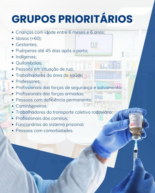 Os grupos prioritários incluem: