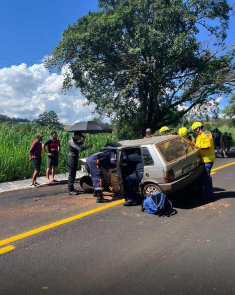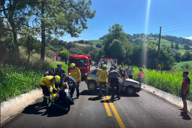 A ocorrência foi registrada por volta das 13h40, na localidade de Linha Gavião, e envolveu uma colisão frontal seguida de capotamento entre dois veículos de passeio. No local, havia aproximadamente três vítimas, sendo que uma delas ficou presa às ferragens, exigindo trabalho especializado de resgate.