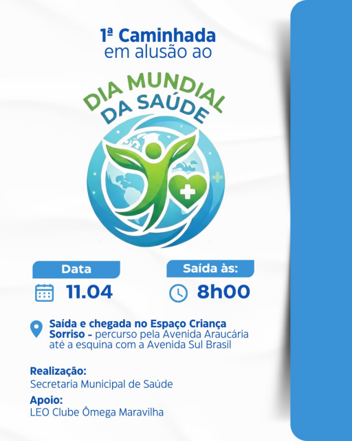 A ação contará com a realização da 1ª Caminhada em alusão à data, com saída às 8h, do Espaço Criança Sorriso. O percurso segue pela Avenida Araucária até a esquina com a Avenida Sul Brasil, retornando ao ponto de partida.