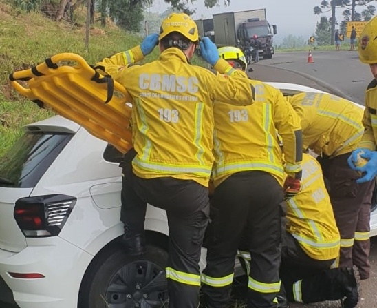 Um grave acidente de trânsito foi registrado na manhã desta sexta-feira, dia 10, na BR-282, em Joaçaba, no Oeste catarinense. A batida frontal envolveu uma Fiat Strada e um Polo Tracker.