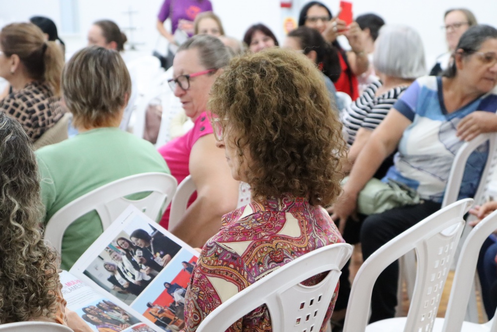 O encontro foi marcado pela participação ativa do público, com mulheres compartilhando experiências, dúvidas e reflexões. Como dinâmica final, cada participante recebeu um papel em branco para escrever uma mensagem de encorajamento. Os bilhetes foram depositados em uma caixa e, ao final, ficaram à disposição dos presentes, promovendo um momento de troca e apoio coletivo.
